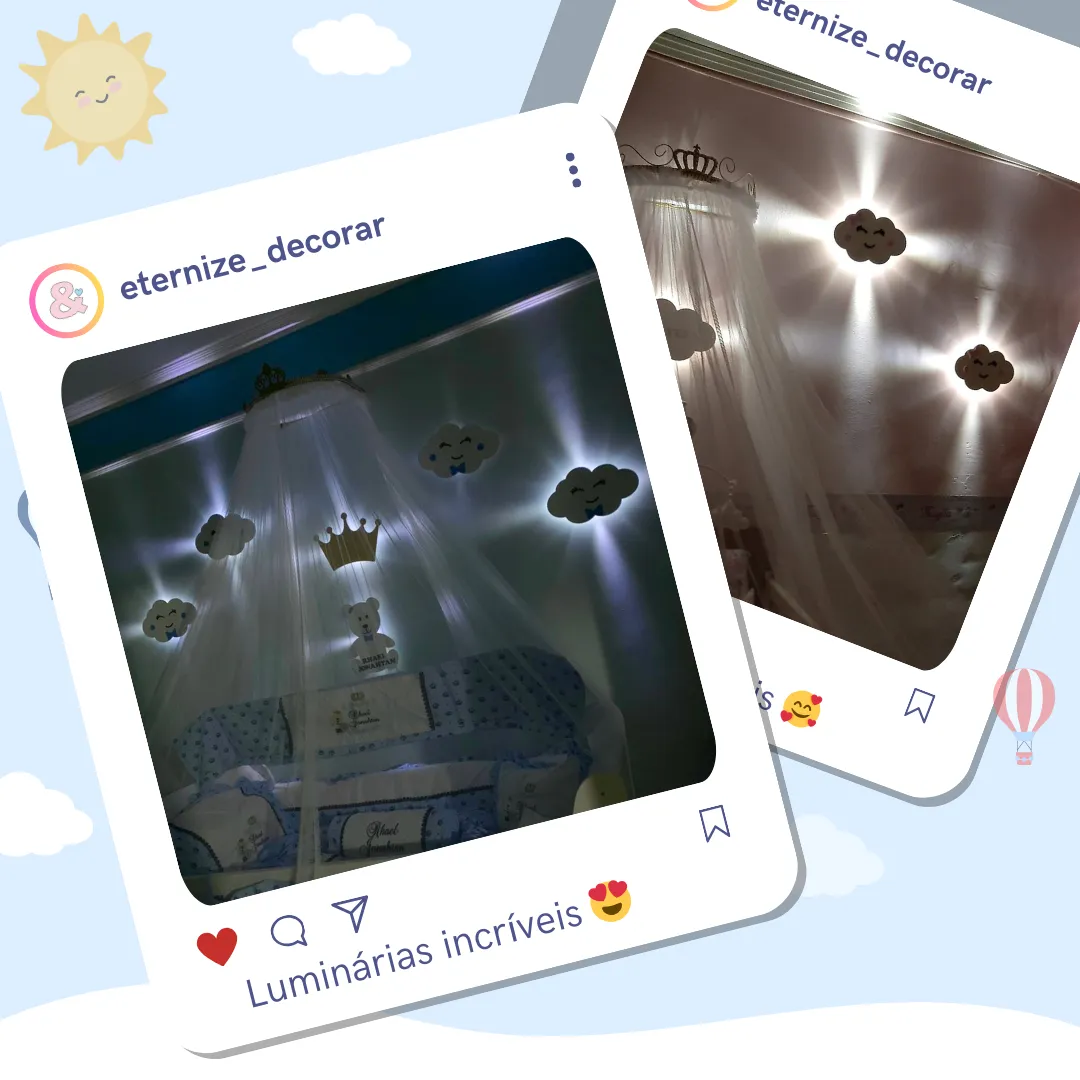 ▲A nuvem é a luminária mais vendida, pois além de ser muito fofa, combina com qualquer tema e cabe perfeitamente o nome da criança.